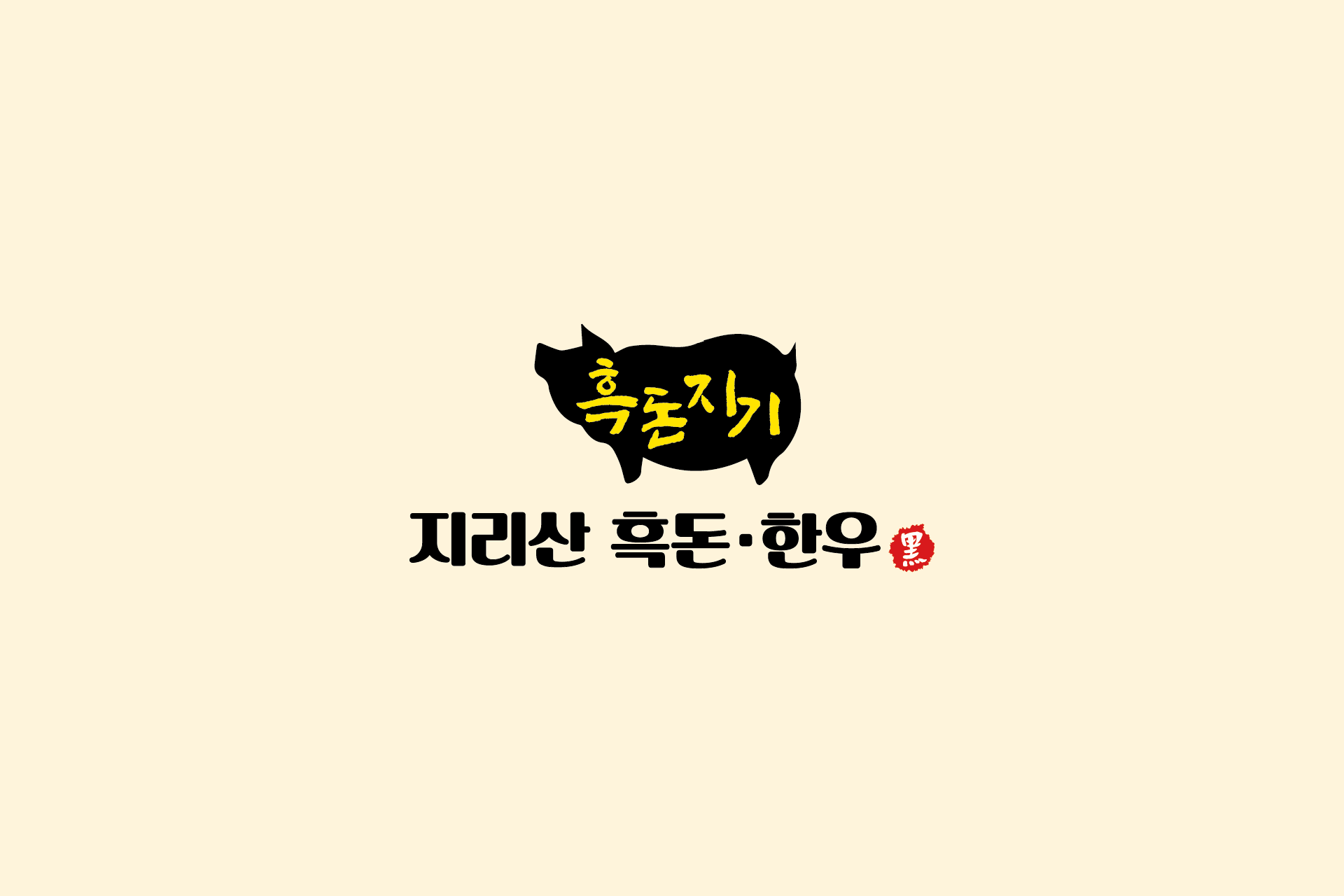 흑돈지기는 지리산 흑돼지와 한우라는 지역 특산물을 중심으로 기획된 외식 브랜드 아이덴티티 디자인입니다. 돼지 실루엣을 직관적으로 활용한 심볼은 브랜드의 핵심 재료를 명확하게 전달하면서도, 강한 시각적 인상을 남기도록 설계되었습니다.